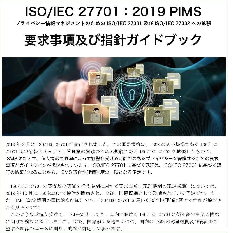 ISO/IEC 27001に関するPIMS固有の要求事項及び関連情報を規定 |