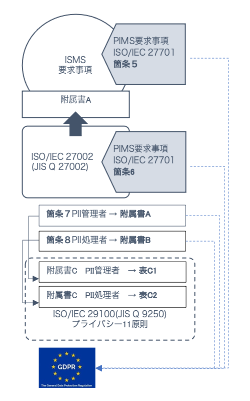 ISO/IEC 27701 附属書Dでは、PIMS管理策についてEU一般データ保護規則(GDPR)に対する対応付けが記載されています。