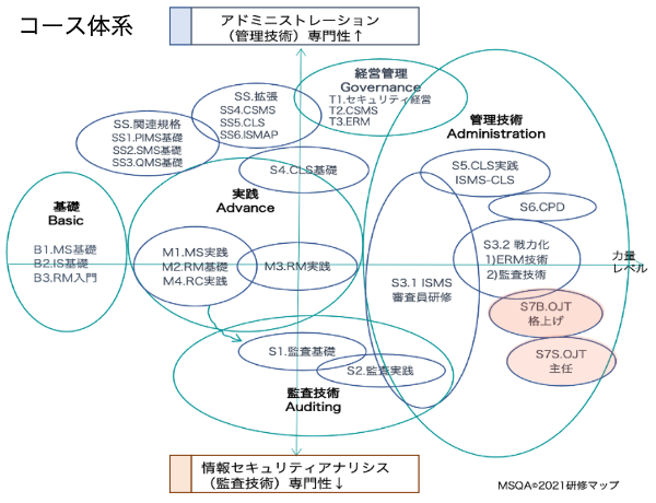 格上げ申請は、『情報セキュリティマネジメントシステム格上げ申請前までに、情報セキュリ ティの全審査(監査)過程を経験していること。また、審査(監査)チームメンバーとして4回以上、かつ審査日数合計20日以上(現地審査日数合計14日以上)の実績を有すること。』とされています。(2021年1月改定予定)MSQAでは、監査業務支援(チーム派遣)と連携し、MSQA(NICC開催)の審査員を受講し、実践(戦力化)コース修了者にチームメンバーとしてして参加いただき、主任審査員の指導のもとで、OJTを実施します。