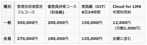 | 管理技術者認定研修プログラム受講料 |